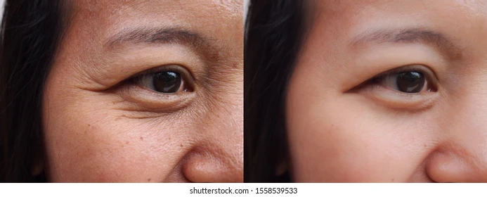 - Xuất hiện nhiều nếp nhăn li ti dưới mắt và đuôi mắt.